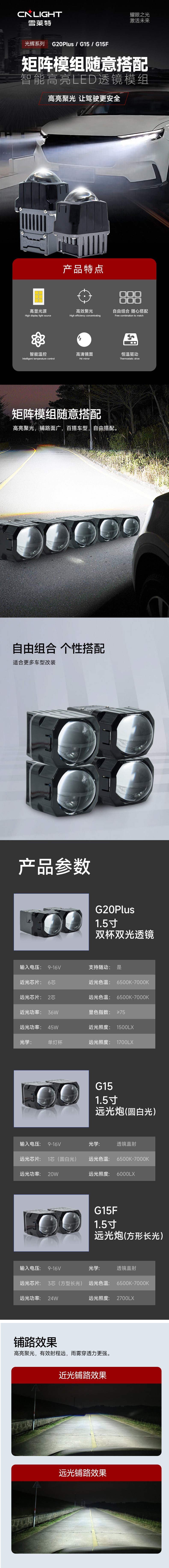 1.5寸远光炮圆白光透镜模组,亮度高,体积小巧,适合市面上大部分矩阵大灯车型安装使用。