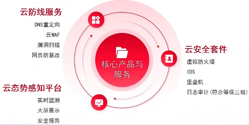 云安全与数据防护产品:云安全套件包括虚拟防火墙、IDS、堡垒机、日志审计等功能,符合等保三级要求,为企业提供全方位的网络安全防护。